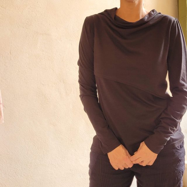 חולצה א-סימטרית מבד סריג כותנה מחורר קלות, לא שקוף
