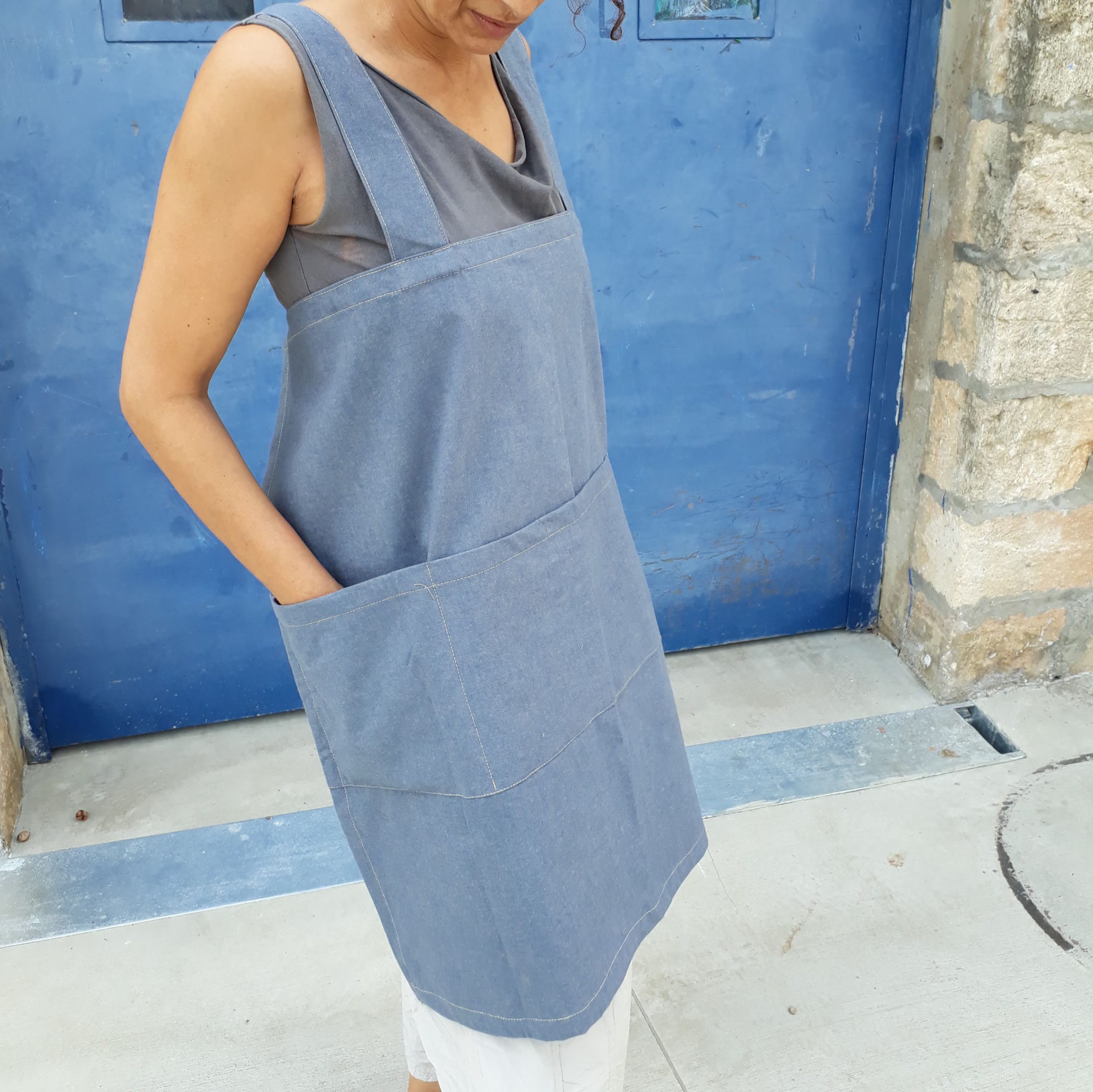 סינר ללא קשירה למטבח או ליצירה נראה כמו בגד מגניב עם כיסים גדולים מתנה מושלמת בד כותנה