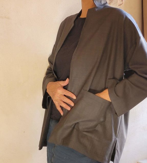 בד אפור באריגה יפייפיה עם כיסים